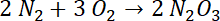 Teraz nie zgadza się liczba atomów azotu. Po prawej stronie znajdują się 4 atomy, a po lewej jedynie 2. Dopisujemy więc współczynnik 2 przed cząsteczką azotu po lewej stronie.