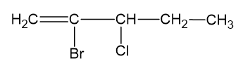 Przedrostek „2-bromo” oznacza, że do drugiego atomu węgla w pentenie jest przyłączony atom bromu, a „3-chloro” – do trzeciego atomu węgla w pentenie jest przyłączony atom chloru.