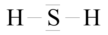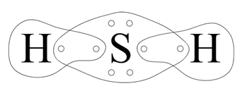 Atom wodoru dąży do uzyskania dubletu elektronowego. Brakuje mu do tego jednego elektronu. Atomowi siarki brakuje dwóch elektronów do uzyskania oktetu elektronowego. Siarka brakujące dwa elektrony uwspólnia z dwoma atomami wodoru. Mamy dwie wspólne pary elektronowe (dwa wiązania pojedyncze) oraz w przypadku siarki, dwie wolne (niewiążące) pary elektronowe.