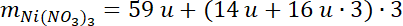 Azotan niklu zawiera jeden atom niklu, trzy atomy azotu i dziewięć atomów tlenu. Aby policzyć masę cząsteczki, musisz dodać do siebie masy wszystkich występujących w niej atomów.