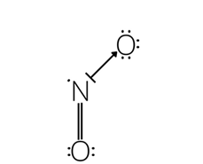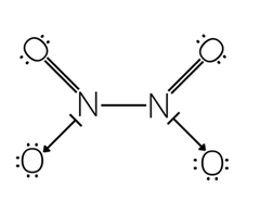 W cząsteczce NO2 występuje niesparowany elektron, a azot posiada 7 elektronów (nie jest spełniona reguła helowca). Dwie cząsteczki NO2 łączą się z wytworzeniem dimeru, w którym atomy azotu spełniają regułę helowca.