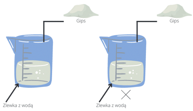 Obserwacje: Gips nie rozpuścił się w wodzie w temperaturze pokojowej. Po podgrzaniu gips się rozpuścił.