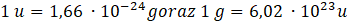 Masa atomowa to masa pojedynczego atomu pierwiastka chemicznego i wyraża się ją w atomowych jednostkach masy, czyli unitach [u]. Tę masę można przeliczyć na gramy dzięki znajomości zależności: 1 u = 1,66 ∙ 10-24 g.