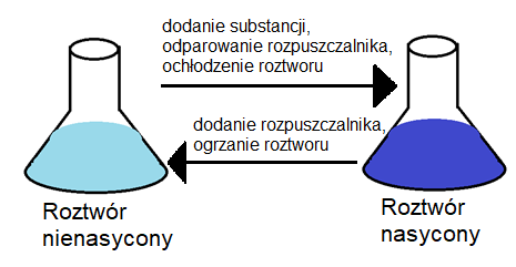 Roztwór nienasycony to roztwór, w którym może rozpuścić się jeszcze więcej substancji rozpuszczanej. Roztwór, w którym jest osiągnięty próg rozpuszczalności substancji nazywamy roztworem nasyconym.
