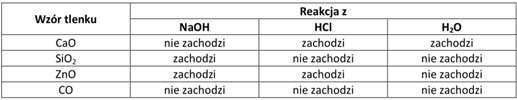 W tym zadaniu musisz uzupełnić podaną tabelę o wzory związków oraz określenia, czy zachodzi w nich określona reakcja.