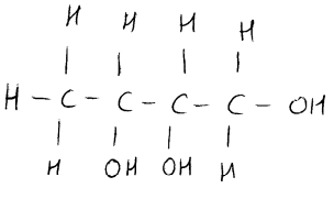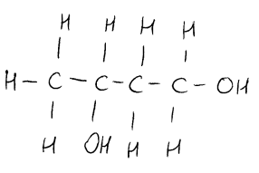 Aby narysować wzór alkoholu, tworzymy węglowodór, który składa się na jego nazwę i pod zaznaczone w nazwie numery atomów węgla podłączamy grupy -OH.