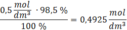 W podanym przypadku dysocjuje jedynie 1,5% wszystkich cząsteczek wprowadzonych, co znaczy, że 98,5% cząsteczek nie dysocjuje. Mnożymy 98,5% przez początkowe stężenie i otrzymujemy wynik.