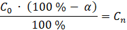 ). Znając stopień dysocjacji i początkową ilość wprowadzonych cząsteczek możemy określić liczbę zdysocjowanych cząsteczek. Odejmując od 100%, stopień dysocjacji, otrzymujemy analogiczny wzór, ale posiadający ilość niezdysocjowanych cząsteczek.