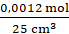0,1 mol ∙ dm-3∙ 12 cm3 = 0,0012 mol