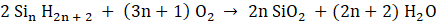 Operując na zmiennych symbolicznych, uogólniamy równanie w taki sposób, aby dało się podstawić dowolną wartość. Równanie spalania silanów jest analogiczne do całkowitego spalania alkanów.