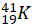 , 19 protonów, 22 neutrony, 19 elektronów