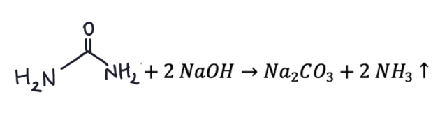 W wyniku reakcji hydrolizy zasadowej mocznika następuje zmiana zabarwienia żółtego papierka wskaźnikowego na kolor niebieski, co oznacza, że produktem reakcji jest amoniak (NH3).