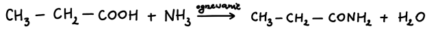 Równanie reakcji kwasu propanowego z amoniakiem: