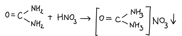 Substancje, które reagują ze sobą ze strąceniem osadu to mocznik oraz kwas azotowy(V).