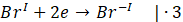 W podanej reakcji brom zmienia stopień utlenienia z +I na -I ulegając reakcji utleniania. Natomiast azot ulega redukcji zmieniając stopień utlenienia z -III na 0.