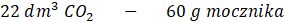 Odpowiedź: Aby otrzymać 200 kg mocznika, należy użyć 93,3 m3 tlenku węgla(IV) oraz 186,7 m3 amoniaku.