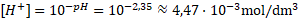 | [H⁺], mol/dm3 |
