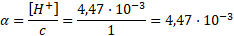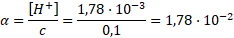 Stopień dysocjacji (doświadczalny):