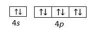 | Nazwapierwiastka M | Symbol pierwiastka M | Konfiguracja elektronów walencyjnych zapisana systemem klatkowym | Liczba elektronów na orbitalach typu p |