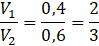 V2: 1,1 – 0,5 = 0,6