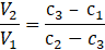 mniejsze stężenie – c1