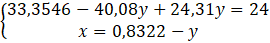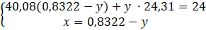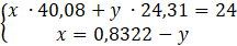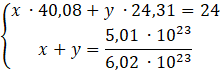 Pierwsze równanie w układzie odpowiada temu, że suma mas Mg i Ca wynosi 24 g (masa molowa pomnożona przez szukaną liczbę moli). Drugie równanie mówi, że sumaryczna liczba moli Ca i Mg powoduje powstanie pewnej liczby moli H2, która wynosi określony ułamek cząsteczek (w 1 molu substancji zawsze jest zawartych