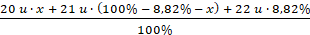 2017,9 = 20x + 21(100 – 8,82 - x) + 22 ∙ 8,82