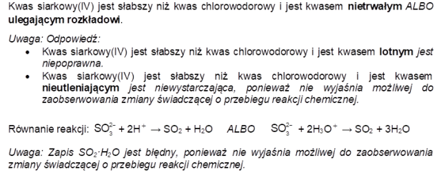 Ustal, jaką właściwość kwasu siarkowego (IV) potwierdził wynik doświadczenia w probówce II, a następnie zapisz w formie jonowej skróconej równanie reakcji, która zaszła w probówce II po dodaniu roztworu HCl i była przyczyną obserwowanych zmian.