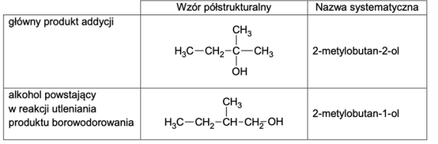 - alkoholu powstającego w reakcji utleniania produktu borowodorowania 2-metylobut-1-enu, a następnie nazwij produkty tych reakcji.