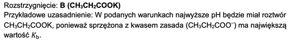 Wskaż, który roztwór soli (A, B albo C) ma najwyższe pH, i uzasadnij to porównaniem wartości Kb.