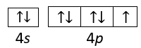 B – Niesparowany elektron znajduje się na podpowłoce 4p