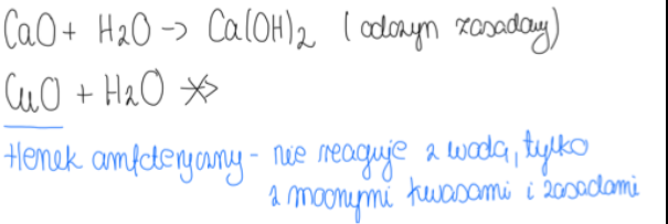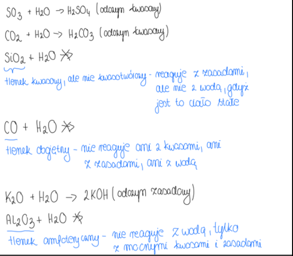 Wybierz spośród podanych te tlenki, które reagują z wodą i zapisz równania ich reakcji z wodą oraz ustal odczyn otrzymanych roztworów.