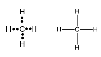 Wzór kropkowy przedstawia wiązania za pomocą kropek. Na skutek uwspólnienia elektronów powstaje przedstawiona struktura. We wzorze kreskowym wiążące pary elektronowe, wolne pary elektronowe oznacza się kreskami, a wiązania koordynacyjne – strzałkami.