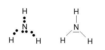 W tym zadaniu narysuj wzór elektronowy kropkowy oraz kreskowy dla cząsteczki NH3. Uwzględnij wolne pary elektronowe oraz zaznacz strzałkami powstające wiązania koordynacyjne.