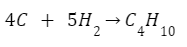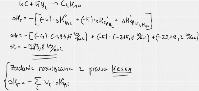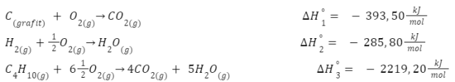 W tym zadaniu musisz napisać równanie reakcji chemicznej otrzymywania butanu z pierwiastków chemicznych oraz obliczyć standardową entalpię tworzenia butanu, znając standardowe entalpie spalania grafitu, wodoru i butanu.
