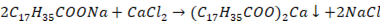 Tworzenie mydła wapniowego (stearynian wapnia) – reakcja z węglanem lub chlorkiem wapnia: