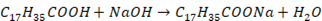 Tworzenie mydła sodowego (stearynian sodu) – reakcja z wodorotlenkiem sodu:
