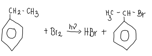 Jeśli do pochodnych benzenu z grupą alkilową dodaje się chlor/brom w obecności światła, wówczas dochodzi do substytucji wolnorodnikowej- atakowany jest podstawnik, a nie pierścień aromatyczny.