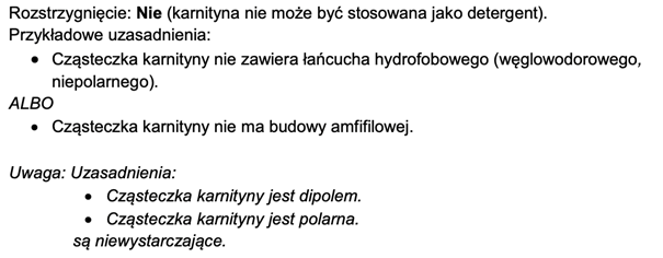 Oceń, czy karnityna może pełnić funkcję detergentu, i uzasadnij to, odwołując się do jej budowy.