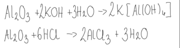 Tlenki amfoteryczne reagują z mocnymi kwasami i zasadami, a nie reagują z wodą.