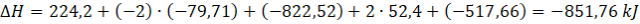 Wynik musimy otrzymać w kJ/mol, a nasz wynik dotyczy tworzenia 2 moli NaOH: