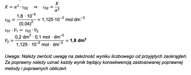 Oblicz, do jakiej objętości należy rozcieńczyć przygotowany roztwór, aby stopień dysocjacji analizowanego kwasu był równy 4%.