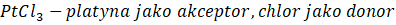 Atom platyny ma niedobór elektronów, więc może tworzyć wiązanie koordynacyjne jako akceptor, natomiast atomy chloru mogą być donorami.