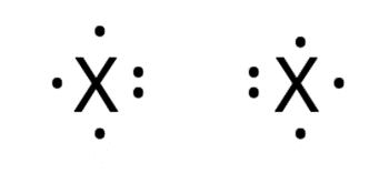 Zapisz wzór elektronowy cząsteczki, która składa się z dwóch jednakowych atomów, z których każdy ma po 5 elektronów walencyjnych.