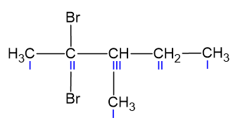 -Ponumerować atomy węgla, tak aby najbliższy podstawnik miał jak najniższy numer (gdyby miały takie same numery, należy kierować się wielkością danego podstawnika, zaczynamy w taki przypadku od największego).