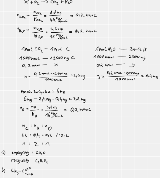 W tym zadaniu musisz ustalić wzory: empiryczny i rzeczywisty tego związku organicznego, wiedząc, że jego masa molowa wynosi 60 g/mol.