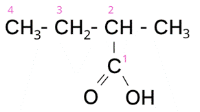Krok 1: Określ najdłuższy łańcuch węglowy. Grupa -COOH wyznacza pierwszy atom węgla:
