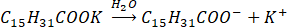 W tym zadaniu zapisz równanie reakcji hydrolizy palmitynianu potasu.