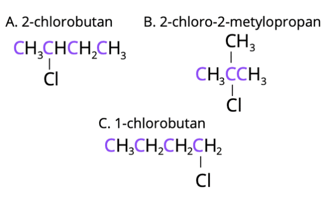Odszukaj związki o wzorze C4H9Cl i wskaż izomery szkieletowe.