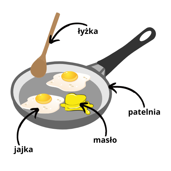 Obserwacje: W trakcie smażenia jajecznicy obserwujesz ścinanie się zawartości jajka.